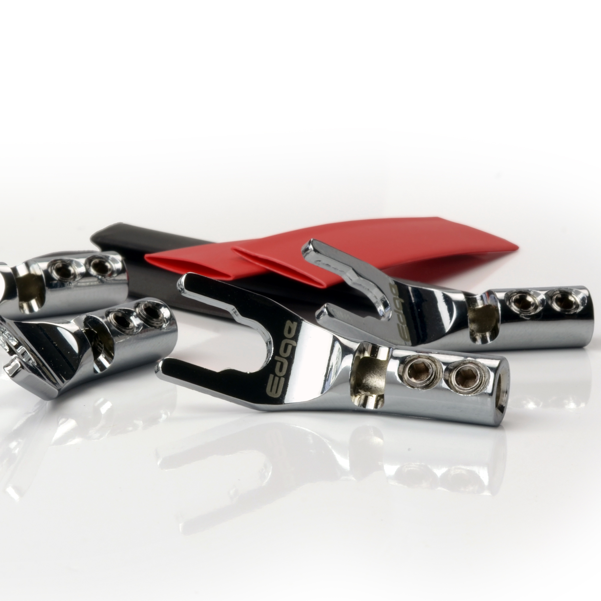 EDGE Chrome plated Spade Connectors, provides a convenient way to connect your speaker cables to the binding posts of your amplifier / speaker. Suitable for when traditional banana plugs either do not fit, or protrude too far from the rear of an amplifier or speaker, or when creating jumper leads when bi-wiring speakers.
