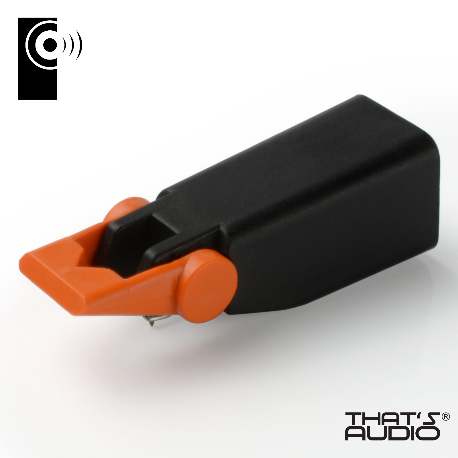 - The CONICAL shaped STYLUS – the stylus (or needle) is the part that tracks the groove on your vinyl record. The two most common stylus shapes are spherical (conical) styli and elliptical styli (bi-radial). A typical conical stylus tip (similar to a ball point pen) has a larger radius (compared to an elliptical stylus)